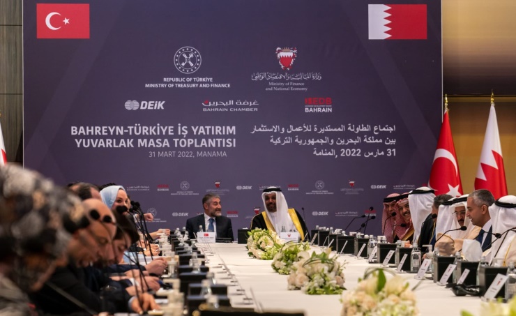 Manama, Mar.31 (BNA): The Joint Bahraini-Turkish Committee has today held its seventh meeting. The session was attended by Finance and National Committee Minister Shaikh Salman bin Khalifa Al Khalifa, Turkish Minister of Treasury and Finance, Dr. Nureddin Nebati and businessmen. The Turkish minister was briefed about Bahrain’s development strides and the role played by the Economic Development Board in promoting the Kingdom in global markets and attract foreign direct investments. The Minister of Finance and National Economy noted deep-rooted ties and shared keenness on furthering economic cooperation and boosting trade exchanges, citing the signing of agreements to encourage and protect investments and avoid double taxation. He said that the volume of trade exchanges has reached $600 million annually, noting that Bahrain has granted Turkey the status of "accredited partner" for the International Center for Sea and Air Freight Services in the Kingdom, which would further strengthen economic, commercial and investment partnership between the two countries. He highlighted initiatives to support the economic recovery plan in the logistics sector, namely increasing the destinations of flights to more than 70 destinations, raising the capacity of air freight, in addition to increasing the capacity at Shaikh Khalifa Port. EDB Chief Executive Officer Khalid Ibrahim Humaidan welcomed the Turkish business delegation, stressing the council’s role in support investors to set up their prokects in Bahrain. He underlined Bahrain’s keen interest in supporting joint cooperation with Turkey and attracting global investments and capitals which would benefit different sectors.