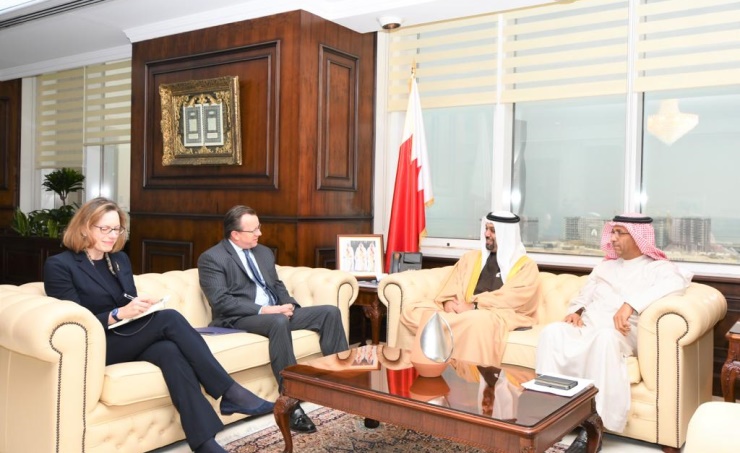 Manama, Jan. 23 (BNA): Minister of Finance and National Economy Shaikh Salman bin Khalifa Al Khalifa received today the US Ambassador to Bahrain Justin Sibrell. He stressed distinguished and growing bilateral relations mainly in the economic and investment fields. He pointed out economic partnership between Bahrain and the USA mainly in the financial and business sector.