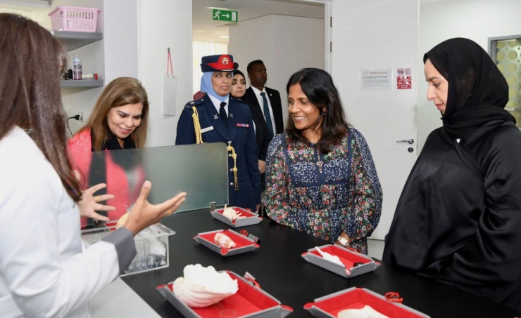 Manama, Oct. 8 (BNA): First Lady of the Maldives, Fazna Ahmed, and INJAZ Bahrain Board Chairperson and Supreme Council for Women (SCW) member, Shaikha Hessa bint Khalifa Al Khalifa, have paid a visit to the Bahrain Institute for Pearls and Gemstones (DANAT).