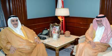 Manama, May 3 (BNA): Minister of Foreign Affairs, Shaikh Khalid bin Ahmed bin Mohammed Al Khalifa, today received a letter from the President of the Commission for Tourism and National Heritage in the Kingdom of Saudi Arabia, His Royal Highness Prince Sultan bin Salman bin Abdulaziz Al Saud, inviting him to attend the opening of the 12th version of Okaz Market. This came as the minister received today Personal and Media Advisor to HRH Prince Sultan, Abdullah bin Mohammed Al Sheikh, who delivered the invitation. The Minister welcomed Al Sheikh and reviewed with him the deep-rooted brotherly ties between the Kingdom of Bahrain and the Kingdom of Saudi Arabia in all fields. He noted that bilateral relations are an exemplary model of strong ties, built on bonds of love, blood relations and common fate, and kept invigorated with constant interaction and coordination. He commended the great efforts of the Saudi Commission for Tourism and National Heritage in pushing forward the wheels of economy and tourism and implementing diverse initiatives and projects, wishing Mr. Al Sheikh every success. In his turn, Advisor Abdullah bin Mohammed Al Sheikh, expressed delight to have met the Minister of Foreign Affairs and uttered admiration over the Kingdom of Bahrain’s comprehensive development, wishing it further progress and prosperity.