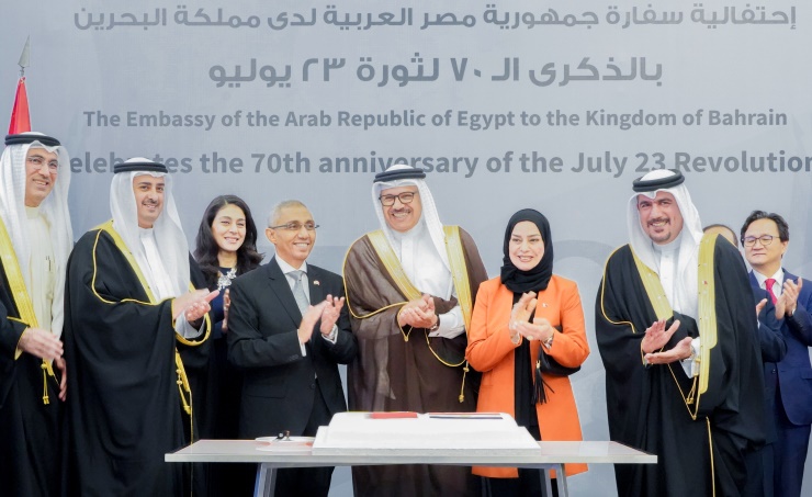 Manama, July 20 (BNA): Foreign Minister Dr. Abdullatif bin Rashid Al-Zayani, offered his heartfelt congratulations to the brotherly Arab Republic of Egypt, its leadership, government and people, on the occasion of the celebration of its National Day and the seventieth anniversary of Revolution Day.