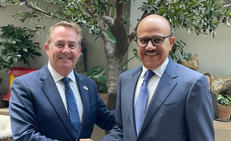 Manama, July 6 (BNA): Minister of Foreign Affairs, Dr. Abdullatif bin Rashid Al-Zayani, met in London today with member of the British House of Commons and Chairman of the Abraham Accords Group, Dr. Liam Fox, on the sidelines of the Freedom of Religion or Belief Conference, which is being held in the British capital.