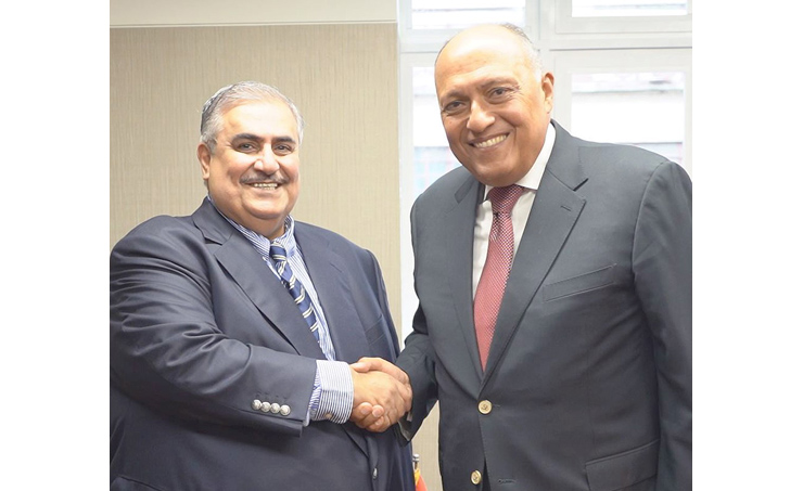 New York, Sept.22 (BNA): The Minister of Foreign Affairs, Shaikh Khalid bin Ahmed bin Mohammed Al Khalifa, with his counterpart, the Minister of Foreign Affairs of the Arab Republic of Egypt, Sameh Shoukry.