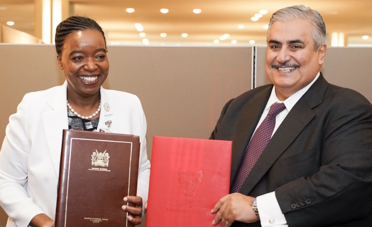 New York, Sept. 26 (BNA): Minister of Foreign Affairs, Shaikh Khalid bin Ahmed bin Mohammed Al Khalifa, met with the Cabinet Secretary of the Ministry of Foreign Affairs of the Republic of Kenya, Monica Juma, at the United Nations Headquarters in New York. During the meeting, an agreement was signed to establish a Joint Committee for Bilateral Cooperation as part of their efforts to develop and strengthen various fields of joint cooperation, and to promote constructive dialogue in all aspects of bilateral relations on regional and international issues. A Memorandum of Understanding was also signed for political consultation between the Ministry of Foreign Affairs of the Kingdom of Bahrain and the Ministry of Foreign Affairs of the Republic of Kenya in order to further enhance friendly relations and cooperation between the two sides. The Minister of Foreign Affairs expressed satisfaction at growing friendly relations between the Kingdom of Bahrain and the Republic of Kenya, which culminated in the signing of an agreement to establish a joint committee for cooperation, as well as a Memorandum of Understanding for political consultation between the two countries. He added that this reflects keenness of both countries to expand cooperation in a way that enhances their interests and benefits their friendly peoples.