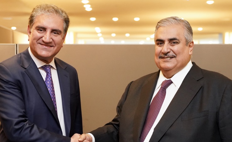 New York, Sept. 26(BNA): The Minister of Foreign Affairs, Shaikh Khalid bin Ahmed bin Mohammed Al Khalifa, met with the Foreign Minister of the Islamic Republic of Pakistan, Shah Mahmood Qureshi, on the sidelines of the 74th session of the United Nations General Assembly in New York.