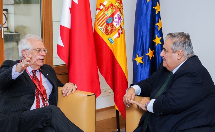 Brussels, Feb. 4 (BNA): The Minister of Foreign Affairs Shaikh Khalid bin Ahmed bin Mohammed Al Khalifa met with his Spanish counterpart Mr. Josep Borrell, on the sidelines of his participation in the EU-League of Arab States ministerial meeting in Brussels, the Kingdom of Belgium. The Minister of Foreign Affairs hailed distinguished relations of friendship between the Kingdom of Bahrain and the Kingdom of Spain, expressing the Kingdom of Bahrain’s aspirations to further enhance these relations at all levels, in addition to strengthening joint cooperation regarding regional and international issues. For his part, Mr. Borrell stressed growing relations between the Kingdom of Bahrain and the Kingdom of Spain at the economic and political levels, affirming keenness of the Kingdom of Spain to bolster these relations for the common interest of both countries. They also exchanged views on the most important issues on the agenda of the EU-League of Arab States ministerial meeting. (MOFA)