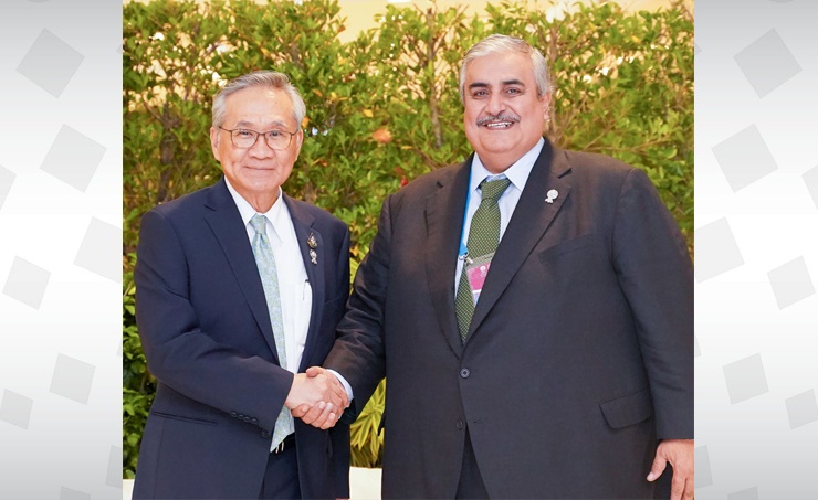 Bangkok, Nov. 2 (BNA): Minister of Foreign Affairs, Shaikh Khalid bin Ahmed bin Mohammed Al Khalifa, met today his Thai counterpart, Don Pramudwinai, on the sidelines of the ASEAN Foreign Ministers' Preparatory Meeting for the 35th ASEAN Summit, held here on November 2-4. Shaikh Khalid expressed his utmost thanks to the Minister of Foreign Affairs of the Kingdom of Thailand for his invitation to the Signing Ceremony of the Instrument of Accession to the Treaty of Amity and Cooperation in Southeast Asia (TAC), which acts as a testament of the depth of the friendly relations between the Kingdom of Bahrain and the Kingdom of Thailand, and their constant development witnessed at all levels. He pointed out that this reflects the keenness of both countries to enhance bilateral cooperation and further joint communication and coordination on regional and international issues in a way that supports common interests and benefits both countries and peoples. The Thai Minister of Foreign Affairs stressed that the Kingdom of Thailand attaches particular significance to enhancing its relations with the Kingdom of Bahrain at various levels, and is keen to take advantage of the available opportunities to expand relations between the two countries, congratulating the Kingdom of Bahrain on acceding to the Treaty of Amity and Cooperation in Southeast Asia.