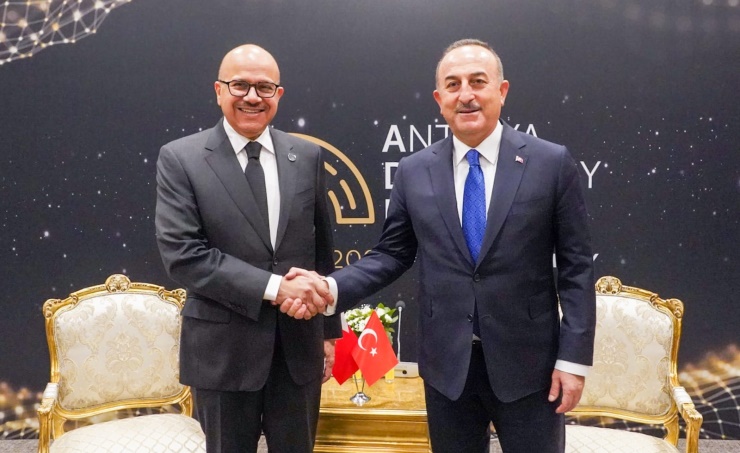 Ankara, Mar.10 (BNA): Foreign Minister Dr. Abdullatif bin Rashid Al Zayani, met in Antalya today with his Turkish counterpart Mevlut Cavusoglu, on the occasion of his participation in the Second Antalya Diplomatic Forum. The Turkish minister welcomed Dr. Al Zayani’s participation in the Antalya Diplomatic Forum, expressing his happiness at the development of the bilateral relations between the two countries in various fields, noting the results of his official visit to Bahrain recently. Dr Al Zayani expressed his thanks to his counterpart for his invitation to participate in the Antalya Diplomatic Forum, noting the development of joint cooperation between the two countries in the service of the common interests, wishing the Republic of Turkey further growth and prosperity. The two sides discussed bilateral cooperation and ways to advance bilateral relationsit to more comprehensive levels in all fields, in addition to the developments of the political and security situations on the regional and international arena, and issues of common interest. The meeting was attended by the delegation accompanying the minister.