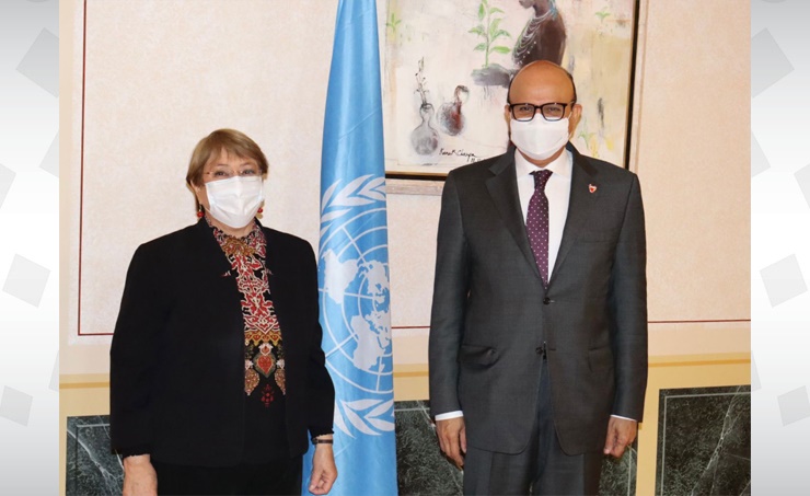 Geneva, Nov. 10 (BNA): Minister of Foreign Affairs, HE Dr. Abdullatif bin Rashid Al-Zayani, met, within the framework of his visit to Geneva, with the United Nations High Commissioner for Human Rights, HE Michelle Bachelet. They discussed bilateral cooperation between the Ministry of Foreign Affairs and the Office of the United Nations High Commissioner for Human Rights (OHCHR) in the field of protecting human rights. They stressed the importance of continuing joint work to meet common goals. They also reviewed the prominent role played by OHCHR in the field of promoting and protecting human rights at the international level, and the continuous efforts undertaken by the Kingdom of Bahrain in implementing the directives of His Majesty the King to further develop the human rights system in the Kingdom. The meeting was attended by the Permanent Representative of the Kingdom of Bahrain to the United Nations Office and Other International Organizations in Geneva, HE Ambassador Dr. Yousef Abdulkarim Bucheeri.