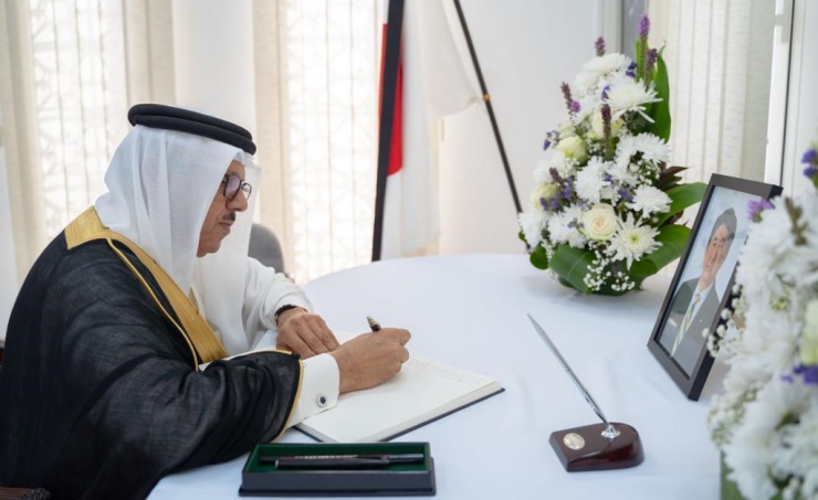 Manama, July 17 (BNA): Foreign Minister, Dr. Abdellatif bin Rashid Al Zayani, paid a visit today to the embassy of Japan in the Kingdom of Bahrain to offer condolences on the death of former Prime Minister Shinzo Abe. Dr. Al Zayani expressed to the Japanese Ambassador to the Kingdom of Bahrain, Miyamoto Masayuki, Bahrain’s sincere condolences to the Japanese government and people, recalling the good qualities of the former Prime Minister and his dedicated contributions to serving his nation and people as well as boosting historical relations of friendship and cooperation between both countries. He wished Japan further growth and prosperity.