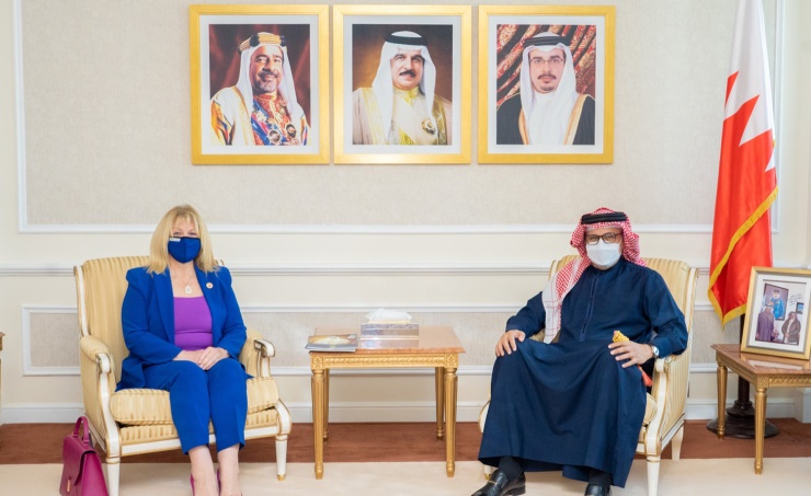 The Minister of Foreign Affairs welcomed the Chairperson of This Is Bahrain, praising the tangible role of the Society in spreading the values of religious tolerance, cultural diversity and peaceful coexistence rooted in Bahraini society, as well as its efforts to highlight the achievements of the Kingdom of Bahrain on the international scene, wishing the Society and its members further success.