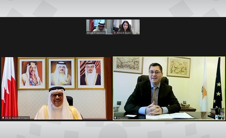 Manama, Dec. 8 (BNA): Minister of Foreign Affairs, Dr. Abdullatif bin Rashid Al-Zayani, received, through a virtual meeting, copies of the credentials of a number of Ambassadors-Designate to the Kingdom of Bahrain.