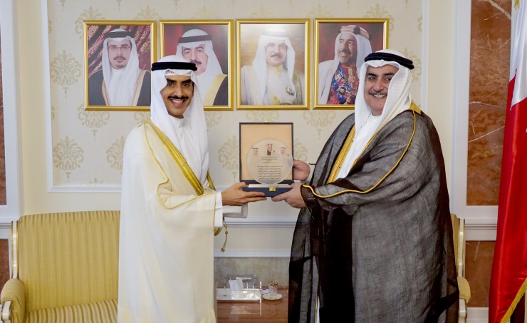 Manama, Oct. 8 (BNA): Minister of Foreign Affairs, Shaikh Khalid bin Ahmed bin Mohammed Al Khalifa, received Shaikh Thamer Al-Jaber Al-Ahmad Al-Sabah today at the Ministry’s General Court, where he received a copy of his credentials as the State of Kuwait's Ambassador to the Kingdom of Bahrain.