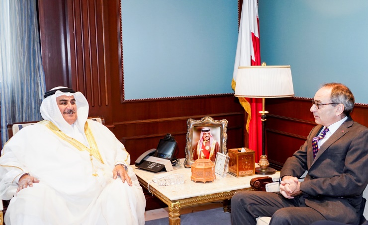Manama, July 11 (BNA): Minister of Foreign Affairs, Shaikh Khalid bin Ahmed bin Mohammed Al Khalifa, received in his office at the Ministry’s General Court today, the Ambassador of the United Kingdom to the Kingdom of Bahrain, Simon Martin, on the occasion of the end of his tenure in the Kingdom. The Minister of Foreign Affairs praised the development of bilateral relations in all fields as a result of the two Kingdoms’ keenness to enhance bilateral cooperation and coordination. He also commended the efforts of the Ambassador in reinforcing relations between the Kingdom of Bahrain and the United Kingdom, wishing him continued success. Ambassador Simon Martin expressed his appreciation for the support he had received during his tenure in the Kingdom of Bahrain, wishing the Kingdom further progress and prosperity.