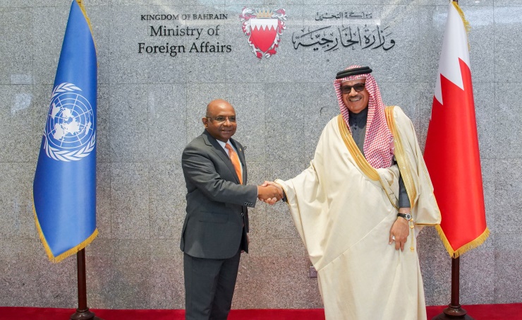 The meeting was also attended by the Acting Resident Representative of the United Nations in the Kingdom of Bahrain, Mohammed Al-Zarqani, and the delegation accompanying the UN General Assembly President.