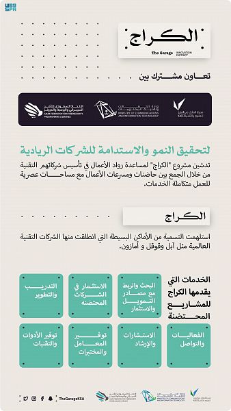 Riyadh, February 02, 2022, SPA -- The global technology event “LEAP”, which is hosted in Riyadh, has witnessed a historic moment today, the announcement to launch “The Garage” a world-class innovation hub to support emerging and disruptive technology based startups. During the event Dr. Munir Eldesouki, President of the King Abdulaziz City for Science and Technology (KACST) stated, that “The Garage is designed to allow entrepreneurs to experiment with their ideas rapidly and to foster cutting-edge technology startups by providing integrated services that include business incubation, mentorship programs, enrichment activities and an open area workspace”. “The launching of The Garage is a direct result of the unlimited support and commitment from the Kingdom’s leadership in enhancing Saudi Arabia’s innovation ecosystem and encouraging the establishment of emerging technology startup companies,” commented Dr. Eldesoukion the sidelines of the conference, the project has received immense empowerment from His Royal Highness Crown Prince Mohammed bin Salman bin Abdulaziz. "It is the product of sincere collaborative efforts and a multi-stakeholder partnership between KACST, Ministry of Communications and Information Technology (MCIT), and the Saudi Federation for Cybersecurity, Programming and Drones (SAFCSP), to facilitate closely aligned activities and open access to KACST’s labs, rapid prototyping facilities and specialized capabilities that will provide additional support and technical services to entrepreneurs, especially in “deep-tech” startups” he added. Dr. Eldesouki explained the name behind “The Garage” by revealing, “it was inspired by the origin stories of the world’s top tech companies like Apple, Google and Amazon, which famously launched their businesses from the inside of a Garage”. His Excellency continued, “Driven by this inspirational concept, the team worked to transform a multi-level parking lot structure strategically located in the heart of Riyadh into an innovation hub, in addition to enabling access to KACST’s elite group of researchers and scientists”. In highlighting the subtle aspects of “The Garage”, Dr. Eldesouki stated that "The Garage seeks to establish a successfully proven innovative environment, such as Silicon Valley, Station F and others. It aims to create a similar startup culture that integrates innovation processes, creative thinking, design testing, and entrepreneurship under one roof, while attracting the brightest minds from across the Kingdom and abroad, encouraging them to turn their dreams into realities, their ideas into innovations, and their startups into unicorns.” “The Garage will become the ideal place to engage with entrepreneurs and promote the establishment of startups to achieve economic growth and financial sustainability by the commercialization of innovative solutions into products and services. At the same time working to develop the business skills of entrepreneurs through mentorship programs and workshops with stakeholders,” said Dr. Eldesouki. From another point of view, the CEO of SAFCSP, Eng. Muteb Alqany, stated that “The Garage project is a perfect bridge to connect high-tech startups with potential investors.” He elaborated by indicating that “grants could reach up to 100,000 SAR per qualified business idea, while investments may exceed 500,000 SAR for the most promising startups.” Additionally, Eng. Alqany indicated that “incubation at The Garage passes through several stages. It starts from the evaluation and selection of business ideas, then engagement and incubation stage, including a wide range of services, such as technical and administrative support, mentoring and skills development.” “The programs offered within The Garage will focus mainly on incubating business ideas in emerging and disruptive technologies, for instance, solutions related to the Fourth Industrial Revolution (4IR) and Digital Technologies of the Future.” He concluded. --SPA