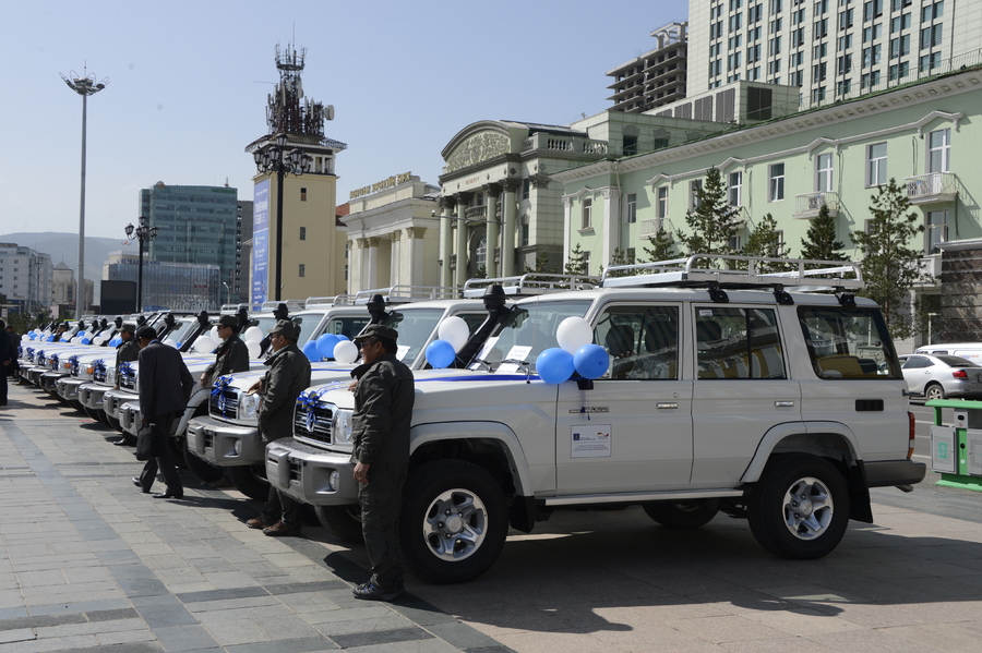The 15 vehicles were handed over to eleven protected areas, namely Otgontenger, Khan Khentii, Ulaan Taiga, Dornod Mongol, Zed-Kahntai Buteeel Mountains, Gorkhi Terelj, Onon-Balj, Orkhon Valley, Khangai Mountains and Khustai Mountains.