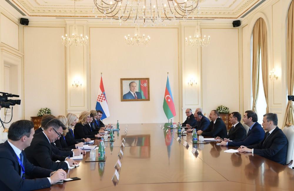 Baku, Azerbaijan, Oct. 24 Trend: There is much room for improvement of Azerbaijani-Croatian cooperation, said Croatia’s President Kolinda Grabar-Kitarovic during an expanded meeting with her Azerbaijani counterpart Ilham Aliyev in Baku Oct. 24. “Thank you very much, Mr. President. It is a pleasure to be here this morning. Thank you for the very warm welcome,” said Grabar-Kitarovic. “We already had a chance to meet the Croatian community who live here in Baku and in other parts of Azerbaijan last night. And I am happy to see that apart from the coach of the national team Robert Prosinečki, there is also a number of others who work, especially in the economic sector, in pharmaceuticals, in transportation, engineering, etc,” she added. The Croatian president said that after President Aliyev’s visit to Zagreb back in 2013 and the meeting on the sidelines of the London conference on Syria in 2016, there is an excellent opportunity today to discuss how to further improve Azerbaijan-Croatia relations. “As you said Mr. President we have no open issues,” she said. “Our political relations are very good, but there is much room for improvement, and there is much room to deepen and widen our cooperation, especially in economy, investment, trade, and also in people-to-people contacts, culture, education, defense and security, and overall cooperation, coordination and consultations on regional and global security issues that affect all of us.” “After the signing of the Zagreb Declaration on the relations of strategic partnership and friendship between our two countries, I think that there are still some concrete steps that we need to take in terms of the commissions, meeting and discussing overall cooperation and details of how to proceed further,” added Grabar-Kitarovic.