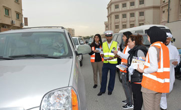The students of Abdulrahman Kanoo International School honoured traffic men in appreciation of their role in ensuring traffic safety. The school, in cooperation with the traffic department, holds a weeklong awareness campaign.