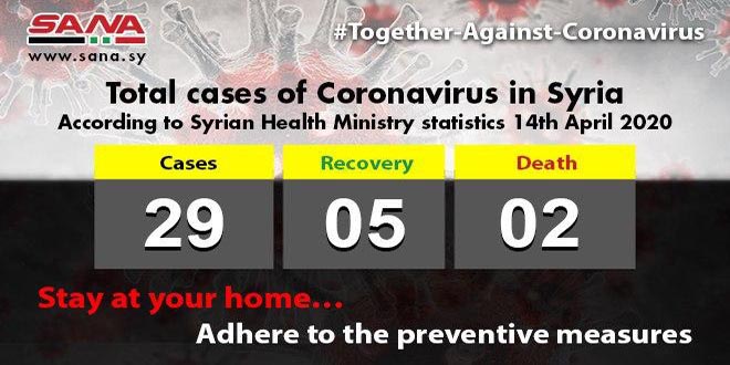 Damascus, SANA – The Health Ministry said on Tuesday that 4 new cases of Coronavirus (COVID-19) have been registered.