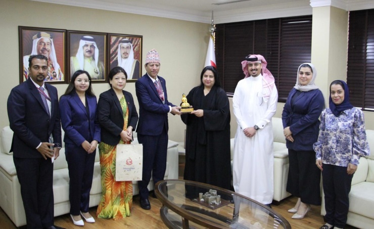 Manama, June 15 (BNA): Secretary-General of the Higher Education Council and Vice-Chairperson of the Board of Trustees of Higher Education Dr. Shaikha Rana bint Isa bin Daij Al Khalifa received Nepal's Chargé d'Affaires to Bahrain Aruna Ghising and Nepal Academy of Tourism and Hotel Management (NATHM) Executive Director Rajesh Upreti with their accompanying delegation.