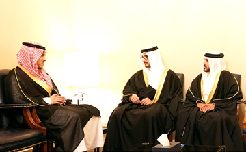 Manama, June 13 (BNA):HH Shaikh Isa bin Salman Al Khalifa and HH Shaikh Mohammed bin Salman Al Khalifa this evening, in the presence of HE Shaikh Khalifa bin Duaij Al Khalifa, President of the Court of the Crown Prince, and HE Shaikh Salman bin Khalifa Al Khalifa, Directer General of the Office of the First Deputy Prime Minister received HRH Prince Salman bin Mohammed bin Nawaf Al Saud, at Riffa Palace.