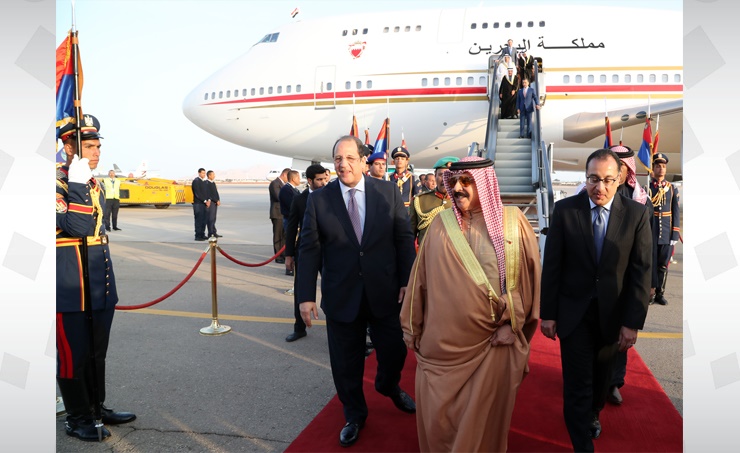 Sharm el-Sheikh, Feb.23 (BNA): His Majesty King Hamad bin Isa Al-Khalifa arrived today in Egypt, at the invitation of President Abdel Fattah el-Sisi, to take part in the first Arab-EU Summit, which will open tomorrow, Sunday, in Sharm el-Sheikh.