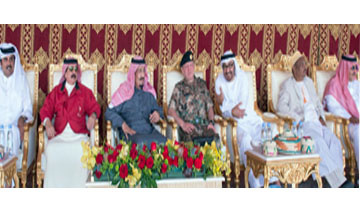 Hafar Al Batin, March 11 (BNA): His Majesty King Hamad bin Isa Al Khalifa attended a lunch banquet hosted by Custodian of the Two Holy Mosques King Salman bin Abdulaziz Al Saud at the private camp in Hafar Al Batin in honour of leaders and representatives of the participating countries in Thunder North military show which is held in Hafa