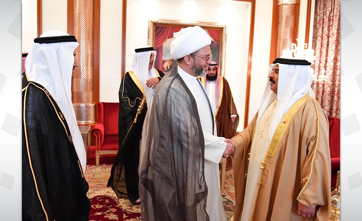 Manama, Oct.1 (BNA): His Majesty King Hamad bin Isa Al-Khalifa today received, at Al-Safriya Palace, Jafferi Endowments Council Chairman Shaikh Mohsen bin Al-Sheikh Abdul Hussein Khalaf Al-Asfoor, who was accompanied heads of community centres (maatams). They greeted HM the King, marking the end of the annual Ashoora season, expressing their loyalty and allegiance, as well as deepest thanks for the royal directives to all government departments to provide required services and facilities. HM the King reiterated keenness on ensuring all services and facilities during this religious season, urging the heads of ma’atams to address any shortcomings. He hailed the strong bonds of amity and solidarity between Bahrainis, adding that blatant external interference will not have an impact on the people of Bahrain. “All peoples and countries in the world value Bahrain and its people for their high ethics”, he said, expressing appreciation for the Ashoora season and expressing the hope that things would be better. He extended deepest thanks to all ministries and other relevant establishments, singling out particularly the Ministry of Interior, which spared no efforts to ensure all security and community services. He lauded civilised Bahraini society which is built on religious diversity, tolerance, fraternity and shared coexistence, urging collective responsibility to protect religious liberties. Jafferi Endowments Council Chairman Shaikh Mohsen bin Al-Sheikh Abdul Hussein Khalaf Al-Asfoor delivered a speech, on behalf of directorate employees, heads of maatams and Husseinyas, thanking HM the King for royal keenness on the annual Ashoora season. He lauded HM the King’s keynote speech which, he said, reflects wisdom, farsightedness and statesmanship in leading the nation to overcome all challenges. He quoted HM the King’s reference to late HM Shaikh Isa bin Salman Al-Khalifa who spared no efforts to promote people’s rights hailing the royal keynote speech which advocated justice, unity and tolerance. He backed the HM the King’s call to protect the sanctity of religious occasions under the banner of national unity and Islamic values. Speaking on behalf of directorate employees, heads of maatams and Husseinyas, Al-Asfoor stressed the need to avoid repeating the violations which were perpetrated by a group of foreign-backed thugs in order to subvert national unity, hailing conscious-minded Bahraini people who rallied to thwart plots.