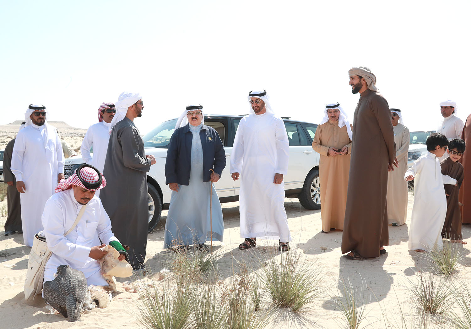 HM King Hamad and HH Shaikh Mohamed bin Zayed also engaged in the traditional sport of falconry, as part of their efforts to revive genuine traditions and heritage.