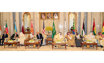 Manama, May 21 (BNA): His Majesty King Hamad bin Isa Al Khalifa, in the presence of His Royal Highness Prince Salman bin Hamad Al Khalifa, Crown Prince, Deputy Supreme Commander and First Deputy Prime Minister, today participated in the Gulf Cooperation Council (GCC) leaders-US President Summit held at King Abdulaziz International Conference Centre in Riyadh. HM the King delivered the following speech: In the name of God, the Most Merciful, the Most Compassionate Custodian of the Two Holy Mosques, The Honorable President of the United States, Your Highnesses, God’s peace, mercy and blessings be upon you, We would like to express our sincere gratitude to you our brother, the Custodian of the Two Holy Mosques, for the kind invitation and generous hospitality we have received since arrival to our valued second home, the brotherly Kingdom of Saudi Arabia. We are also pleased to welcome the honorable President Donald Trump President of the United States of America, to this important meeting which affirms the depth of relations between our countries. In this meeting, we are united by one common cause: to create a world that is safer, more stable and more prosperous. Together we will face down threats; together we will seek new opportunities. Today we are full of hope that Allah willing, we can work to build firm foundations for peace and security. Such foundations will also help bring about moderation, and a culture of coexistence and mutual tolerance, and that is what we all aim to achieve. For the stability of the Gulf region, it is up to Iran to stop exporting its own form of revolution and provoking sectarian extremism and that it knows that we, in the Arabian Gulf, are one people. In these endeavors, we are truly grateful for the friendship and support of the United States of America. The USA is and has always been a long-time ally of Bahrain and indeed the region, for the sake of peace and prosperity Therefore, we are immensely delighted today to welcome our noble guest President Donald Trump. His presence is a mark of respect for the GCC states – and a clear demonstration that the President would like to deepen our friendship at every level: between our militaries, between our governments, and between our peoples. Most importantly of all, our friendship with the United States is vital for global security and for many decades we have enjoyed intensive military co-operation. Since the 1940s US power in the Middle East has resided in Bahrain where the 5th Fleet plays a pivotal role in guaranteeing the flow of oil, combatting piracy and allowing freedom of trade by safeguarding the free movement of vessels in the Arabian Gulf and overseas. This support has been critically important to global stability – and it is a foundation we must build upon today. Custodian of the two Holy Mosques, Your Excellency the President, Your highnesses Our dear brothers The rapid and complex developments the region is witnessing, and the dangerous threats the world faces, demand that direct channels of communication be in place between partners – and strong and comprehensive co-operation be across all fronts. In the face of threats there must be continual consultation between our governments and militaries in our respective countries. In the face of terror and extremism, there must be a united front. Let the message go out from this meeting that however large the number of terrorists, our resolve to defeat them is greater. In our efforts to achieve all these things we look to work with our close friend the United States of America. The United States has had a profoundly positive impact on the peace and stability of the world. With its international influence, its strength and its wisdom it has played a pivotal role – and continues to do so today. President Trump, in the short period of your wise leadership you have demonstrated your complete comprehension of the factors behind the troubles that exist in our region. You have tirelessly sought to tackle the underlying dangers that threaten us all. You have shown yourself to be a leader able to see the bigger picture, and you have shown strength where necessary. It is your honorable record that gives us such confidence in the successful outcome of our meeting. Like you, we wish to strengthen our alliance and deepen cooperation to the furthest possible extent. Like you, we wish to confront terrorist organizations and Militias and those who support them, smashing with an iron fist those who try to destabilize our societies. At the same time, we are pleased with your concern to resolve the greatest problem facing our region; the Palestinian problem. Your efforts will receive our full support and assistance. Achieving a just and comprehensive solution in line with the Arab Peace Initiative and related security council resolutions is in the benefit of all. To conclude, I would like to express my most sincere good wishes for the success of our meeting. I am confident that it will be wholly successful in achieving the goals we all aspire for. Together we can collaborate more effectively to tackle the issues that concern us. Together we can deepen our friendship. Together we can overcome the threats we face – and work towards peace and stability for all our nations, and the world. After Allah Almighty, we thank the Custodian of the Two Holy Mosques for his leadership and determination, which brought us together for the good of all. And we also thank the Secretary General of the Gulf Cooperation Council and his staff for all that they have achieved. God’s peace, mercy and blessings be upon you. The GCC leaders, heads of delegations and US President Donald Trump exchanged a memorandum of understanding (MoU) to establish a center for combating terrorism financing. HRH Crown Prince Mohammed bin Naif bin Abdulaziz, Deputy Premier and Minister of Interior, represented the GCC countries and US Secretary of State Rex Tillerson represented the US in the signing cerem