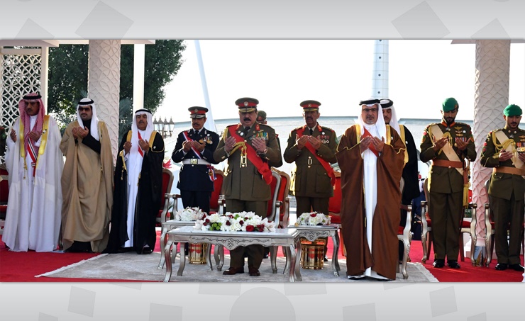 Manama, Dec.17 (BNA): A tribute was paid to the the brave martyrs who fell in the line of duty since the establishment of the state in the era of the first founder until today. “The martyrs sacrificed their lives for the sake of the homeland and fell in the line of duty as they were serving the nation”, said His Majesty King Hamad bin Isa Al-Khalifa. He saluted the national heros who embody the value of courage and sacrifice, becoming a source of pride for Bahrain and role model for the coming generations. HM King Hamad, the Supreme Commander, paid homage to the martyrs of duty as he patronized a ceremony marking the Commemoration Day. His Royal Highness Prince Salman bin Hamad Al-Khlifa, Crown Prince, Deputy Supreme Commander and First Deputy Premier attended the commemorave event at the Al-Sakhir Palace. HM the King was received on arrival by BDF Commander-in-Chief Field Marshal Shaikk Khalifa bin Ahmed Al-Khalifa, National Guard Commander Lieutenant-General Shaikh Mohammed bin Isa Al-Khalifa and Interior Minister Lt.Gen. Shaikh Rashid bin Abdulla Al-Khalifa. “The 17th of December will always remain an honourable occasion in our national march, symoblising pride in those Bahrainis who fell in the line of duty, at home and abroad, for the sake of right and justice”, he said. He paid homage to the martyrs of duty who sacrificed their lives to defend national security and sovereignty, combat terrorism and extend a helping hand to those in dire need in a dedicated move stemming from the Islamic teachings and authentic Bahraini values, thus following the steps of fathers and forefathers. HM the King paid tribute to the martyrs’ families which are as brave as their beloved who fell in the line of duty, defending their homeland, hailing their courage, resilience and patriotism. He commended loyal citizens who remained cohesive and showed sympathy and solidarty with the martyrs’ of duty in closed-knit and united homeland. He prayed to Allah the Almighty to rest the martyrs’ souls in eternal peace, in vastest paradise, paying tribute to their families and relatives and wishing Bahrain further progress and prosperity. HM the King, accompanied by HRH the Crown Prince, headed to the National Action Charter Monument where he shook hads with senior officers marking the Commemoration Day. The senior officers expressed deepest congratulatios to HM the King, the Supreme Commander, on the occasion of the , on the occasion of the Kingdom of Bahrain's national celebrations on 16 and 17 of December, marking the anniversary of the establishment of the modern state of Bahrain as an Arab and Muslim country in 1783 by its founder Ahmed Al-Fateh, the 47th Anniversary of its accession to the UN as a full member and the 19th Anniversary of HM the King’s Accession to the Throne. HM the King then headed to the main platform and the national anthem – Al-Salam Al-Malaki – was played on the occasion of the Commemoration Day. HM the King earlier water the palm-tree, symbol of eternal life. The artillery also fired one shot and a minute of silence was observed. A second artillery shot was then fired. Verses of the Holy Quran were also recited Court of Cassation Sharia Department chairman and Al-Fateh Mosque Imam Shaikh Adnan bin Abdulla Al-Qattan earlier delivered a speech paying homage to the martyrs of duty. He paying tribute to HM King Hamad for dedicating the 17th of December to be marked every year as the Commemoration Day, in tribute to the martyrs of duty.