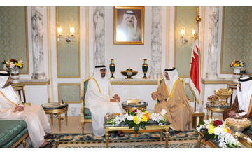 Riyadh, Apr. 21 (BNA): His Majesty King Hamad bin Isa Al Khalifa received at his residence here today, in the presence of His Royal Highness Prince Salman bin Hamad Al Khalifa, the Crown Prince, Deputy Supreme Commander and First Deputy Prime Minister, the Abu Dhabi Crown Prince and Deputy Supreme Commander of the UAE Armed Forces HH Shaikh Mohammed bin Zayed Al-Nahyan. UAE Foreign Affairs Minister Shaikh Abdulla bin Zayed Al-Nahyan also attended the audience, held on the sidelines of HM King Hamad's participation in the GCC-US Summit hosted by Saudi Arabia. HM the King reviewed with the Shaikh Mohammed bin Zayed reviewed the solid long-standing bilateral relations, based on fraternity and kinship ties. Reviewing the Gulf Cooperation Council (GCC) march, they affirmed the two brotherly countries' keenness on boosting the joint GCC action to strengthen it, deepen cooperation among its member states and bring about more progress and prosperity for GCC peoples. The meeting also touched upon the latest regional and global issues of common interest, as well as the agenda of the GCC-US Summit.