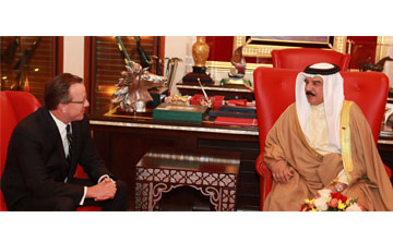 Manama, July 10 (BNA): His Majesty King Hamad bin Isa Al Khalifa today at the Safriya Palace received US Ambassador to Bahrain, Justin Hicks Siberell, who presented HM the King with a copy of the US Department of State report on upgrading Bahrain to Tier 1 status in recognition of its commitment to combatting human trafficking.