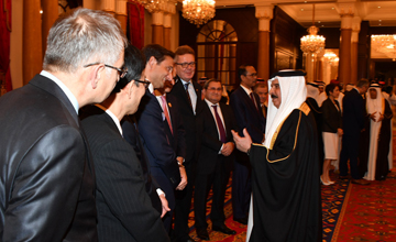 Manama, May 17 (BNA): HM King Hamad bin Isa Al Khalifa today received senior members of the royal family and senior government officials who congratulated him on the holy month of Ramadan, wishing him good health and happiness and the Kingdom of Bahrain further progress and prosperity. HRH Prime Minister Prince Khalifa bin Salman Al Khalifa and HRH Prince Salman bin Hamad Al Khalifa, Crown Prince, Deputy Supreme Commander and First Deputy Prime Minister, were present. HM the King hailed the contributions of the loyal Bahraini citizens to the development and construction process, wishing Bahrainis and residents as well as Arab and Islamic nations many happy returns of the auspicious occasion. HM the King pointed out keenness of Bahraini people to celebrate the holy month of Ramadan, when values of communication and social solidarity are manifested. He stressed that Bahrain will always remain a country of security, stability, coexistence and tolerance, which is also known for building bridges of communication with other civilizations and cultures. HM the King also received diplomats accredited to Bahrain who expressed sincere congratulations marking the advent of Ramadan. They wished HM the king many returns of the occasion and the Kingdom of Bahrain and its people further progress and wellbeing. HM the King praised the excellent relations binding Bahrain with their countries, appreciating their efforts to boost cooperation between their countries and the Kingdom of Bahrain in favor of the joint interests.