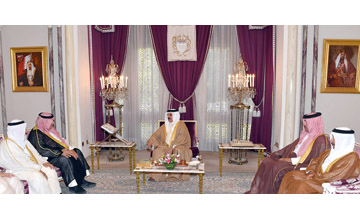 Manama, Jul 12 (BNA): His Majesty King Hamad bin Isa Al Khalifa, today at Al-Safriya Palace, received Sheikh Khalid bin Nayef Al-Araar of Bani Khalid tribe accompanied with Khalifa bin Ahmed Al-Dhahrani and his two sons Mohammed and Al-Walid bin Khalid bin Nayef Al-Araar, marking their current visit to the Kingdom of Bahrain.
