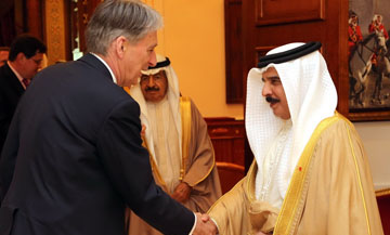 Manama, May 30 (BNA): His Majesty King Hamad bin Isa Al Khalifa received, at the Gudaibiya Palace today, in the presence of His Royal Highness Prime Minister Prince Khalifa bin Salman Al Khalifa, the UK Secretary of State for Foreign and Commonwealth Affairs, Philp Hammond, who is currently on a visit to the Kingdom.