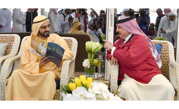 Manama, Feb. 17 (BNA): His Majesty King Hamad bin Isa Al Khalifa and the UAE Vice-President, Prime Minister and Dubai Ruler, HH Shaikh Mohammed bin Rashid Al Maktoum, today attended the 120-km junior and senior race of HM the King’s Endurance Cup. Prominent riders from Bahrain and the UAE participated in the race, which was organised by the Bahrain Royal Equestrian and Endurance Federation (BREEF) at Bahrain International Endurance Village, and sponsored by the GFH Financial Group. On arrival, HM the King and HH Shaikh Mohammed bin Rashid were welcomed by Representative of HM the King for Charity Work and Youth Affairs, Chairman of the Supreme Council for Youth and Sport (SCYS), President of Bahrain Olympic Committee and BREEF Honorary President Shaikh Nasser bin Hamad Al Khalifa, BREEF President and Deputy President of the Supreme Council for Environment, HH Shaikh Faisal bin Rashid Al Khalifa, and BREEF board members, who lauded the royal support for the equestrian sports. HH Shaikh Nasser briefed HM the King and the UAE Vice-President on the stages of the 120-km race and the number of participating riders, noting that BREEF had made all necessary arrangements for Bahraini riders to take part in all races of the season. HM the King and the UAE Vice-President exchanged talks with the riders, wishing them every success. After that HM King Hamad and HH Shaikh Mohammed bin Rashid watched the race. HM the King congratulated all the winners in the race which witnessed fierce competition, praising their outstanding performance which led them to victory. HM King Hamad lauded the distinguished efforts exerted by HH Shaikh Nasser bin Hamad and HH Shaikh Khalid bin Hamad to develop the endurance sport in order to reach the highest levels, and preserve such a deep-rooted Arab sport. HM the King expressed thanks and appreciation to HH Shaikh Mohammed bin Rashid for his kind visit to attend the event, praising the UAE’s participation in the 120-km race, which, he said, reflects the strength of the brotherly Bahraini-UAE relations. HM King Hamad also paid tribute to the BREEF Board Chairman and members for their successful organisation of the race, as well as for their efforts to develop the sport. HM King Hamad lauded the successful participation of the UAE riders in the race, which, he said, affirms the depth of the long-standing relations between the two brotherly countries and peoples in various fields, particularly the sports and youth ones. HM the King also appreciated the good results attained by Bahraini riders in various races, which, he said, reflected their outstanding competence and abilities. HM King Hamad also thanked the race organisers, and praised their efforts to ensure its success, wishing them further success. HH Shaikh Mohammed bin Rashid Al Maktoum commended the big strides of the endurance sport in Bahrain, underlining the great support of HM the King to it which contributed to Bahraini riders’ successes and honourable achievements in various competitions. He added that participation of the Emirati riders is the fruitful outcome of bilateral cooperation in various fields, especially in the endurance races. The UAE Vice-President lauded the role played by HH Shaikh Nasser to develop the endurance sport in Bahrain, which, he noted, contributed to its success in reaching the highest levels. HH Shaikh Nasser crowned the winners of the first three places. He crowned winner Salim Al Katbi, the Royal Team and Al Ruood Stables’ rider, with a gift presented by HM the King. He also crowned the second-placed rider Rashid Al-Balushi, and third-placed rider Abdull Al-Marri, both from UAE stables. HH Shaikh Nasser extended sincere thanks and appreciation to HM the King for his constant patronage of the endurance race, noting that the royal support and patronage have motivate all riders to showcase their outstanding abilities during the season’s most important race. He welcomed the kingdom’s distinguished guest, HH Shaikh Mohammed bin Rashid, and the Dubai Crown Prince, HH Shaikh Hamdan bin Mohammed bin Rashid Al-Maktoum, for their visit to Bahrain to attend HM King Hamad’s Endurance Cup. HH Shaikh Nasser expressed satisfaction for the distinguished technical level showcased by the riders throughout the race. He also praised the UAE riders’ participation in the race, praising their outstanding performance, which, he said, contributed to strengthening competition among riders. He also congratulated all the winners. Earlier today, UAE Vice-President arrived in Bahrain to attend the 120-km junior and senior race of HM the King’s Endurance Cup, and welcomed by HH Shaikh Nasser bin Hamad, Royal Court Minister, Shaikh Khalid bin Ahmed Al Khalifa and BREEF President, HH Shaikh Faisal bin Rashid Al Khalifa.