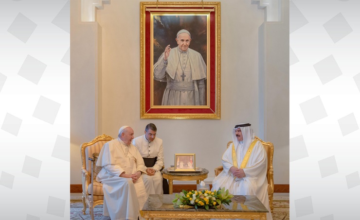 HH Pope Francis expressed thanks and appreciation to HM the King for the gracious welcome and hospitality and for his invitation to visit the Kingdom of Bahrain. He also expressed appreciation to the royal family, commending coexistence and tolerance characterizing the Bahraini society.
