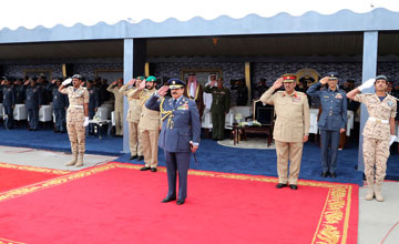 Manama, April 6 (BNA): His Majesty King Hamad bin Isa Al Khalifa paid a visit today to the Royal Bahrain Air Force (RBAF). He was welcomed on arrival at Isa Air Base by BDF Commander-in-Chief Field Marshal Shaikh Khalifa bin Ahmed Al Khalifa, the Defence Minister, the BDF Chief of Staff and RBAF Commander. HM the King was greeted by senior officers. Then, after the national anthem, HM inspected the parade. After that, RBAF Commander Air Vice-Marshal Shaikh Hamad bin Abdullah Al Khalifa gave a speech in which he extended, on behalf of RBAF affiliates, thanks and gratitude to HM the King for the visit. He paid tribute to HM King Hamad for his directives to take part in the Saudi-led Decisive Storm and Restoring Hope operations to restore legitimacy in Yemen. He commended the unflinching royal support to RBAF, pointing out cooperation between the GCC and Arab military forces which yielded the Arab and Islamic coalitions. He also thanked His Royal Highness Prince Salman bin Hamad Al Khalifa, the Crown Prince, Deputy Supreme Commander and First Deputy Premier, and the BDF Commander-in-Chief for their continuous follow-up and support. HM the King presented officers, non-commissioned officers and RBAF members with medals of appreciation in tribute for their dedication in performing their national duties. He lauded participation of RBAF personnel alongside their brethren from BDF units and the Arab Coalition in the Saudi-led Restoring Hope Operation to defend legitimacy and justice in Yemen. He stressed that the noble mission in Yemen is part of continuous contribution of RBAF to promoting regional security and peace under the umbrella of the United Nations. HM the King praised high competence and determination of RBAF affiliates in fulfilling their duties courageously, stressing keenness to continue developing the air force by providing it with the latest weaponries and equipment.