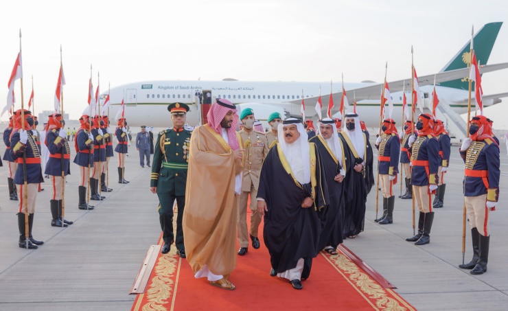 An official reception ceremony was held for HRH Prince Mohammed bin Salman at the Sakhir Palace. The Saudi and Bahraini royal anthems were played, and 21 artillery rounds were fired to salute the kingdom's honourable guest.