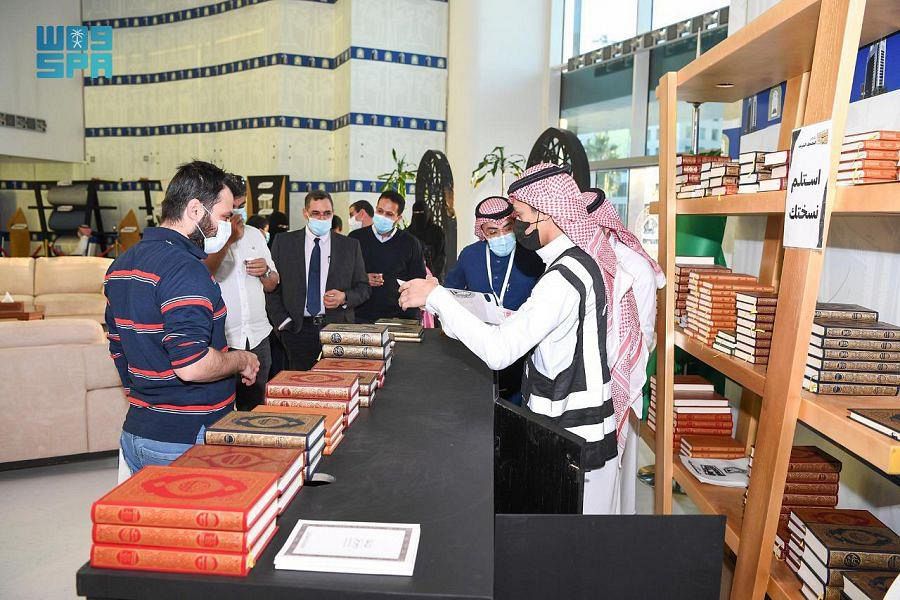 Riyadh, January 18, 2022, SPA -- The Ministry of Islamic Affairs, Call and Guidance, represented by the General Secretariat for Exhibitions and Conventions and King Fahd Complex for the Printing of the Holy Quran, continues organizing the Holy Quran Exhibition for the sixth consecutive day, where it was launched on Wednesday at the ministry’s headquarters, marking the first time of holding the exhibition in Riyadh, Saudi Arabia. The exhibition includes big monitors that narrate the story and stages of establishing the King Fahd Complex for the Printing of the Holy Quran in Madinah and a set of corners that show information on the annual and total prints of the complex, as well as stages of printing the Holy Quran. It also has all the complex’s productions of all copies with all narrations and interpretations in all languages, so as to enable visitors to check on the complex’s efforts in printing the Holy Quran in Brail Language, in addition to offering hospitality services for visitors, where every visitor receives a copy of the Holy Quran. The exhibition will continue till next Friday and it receives visitors daily between 4 pm and 10 pm. --SPA