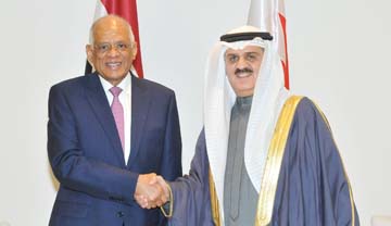 Manama, Jan. 21 (BNA): Speaker of the Council of Representatives, Ahmed bin Ibrahim Al-Mulla, has stressed the long-standing strong relations between the Bahraini-Egyptian leaderships, governments and peoples, describing bilateral ties as “strategic”. Al-Mulla praised Egypt’s supportive stances vis-à-vis important Bahraini issues at all levels and in various fields, emphasising that the security of Egypt and that of the Gulf Cooperation Council (GCC), especially that of Bahrain, are integral and indivisible. The Speaker made the statements as he received here today his Egyptian counterpart, Dr. Abdel Aal, and his accompanying parliamentary delegation, who are on a visit to Bahrain from January 20 to 24, at the invitation of the Council of Representatives.  Al-Mulla lauded the accelerated growth of the Bahraini-Egyptian relations in various fields, including the parliamentary one, commending the great efforts being exerted by His Majesty King Hamad bin Isa Al Khalifa, and President Abdel Fattah el-Sisi. The speaker hailed the “clear and outstanding” contributions of the Egyptian expatriate community to Bahrain’s development process, including medicine, engineering, education, services and tourism, highlighting the Representatives Council’s keenness on using its prerogatives to develop joint relations. The Council of Representatives aims to activate the role of the joint diplomatic and parliamentary committees to achieve the common goals, as well as to intensify exchanged visits and expertise between the two councils and their secretariat-generals. He highlighted the two countries’ consensus and coordinated stances at international gatherings, especially regarding respect for countries’ sovereignty, non-interference in internal affairs, commitment to preserving human rights principles, and combating extremism, violence and terrorism in to serve their interests. Dr. Abdel Aal, the Speaker of Egypt’s House of Representatives, affirmed his country’s stances in support of the GCC, in general, and Bahrain, in particular, noting Bahrain’s security, stability and territorial integrity are a red line.  “We reject any form of interference in its domestic affairs, particularly from some neighbouring countries that support extremism, violence and terrorism, and jeopardize the region’s security and stability,” Dr. Abdel Aal said. He expressed his respect for and appreciation of Bahrain’s leadership, government and people, highlighting the fruitful outcomes of the recent visit of a Bahraini parliamentary delegation to Egypt.  He extended deepest thanks and gratitude to the Kingdom’s leadership, government and people, and to Speaker Al-Mulla for the warm welcome and hospitality accorded to him and his accompanying delegation. He also praised Bahrain’s constant keenness on bolstering its ties with his country. The meeting also focused on Bahrain’s parliamentary experience which, he said, was the fruitful outcome of the Reform Project spearheaded by His Majesty King Hamad bin Isa Al Khalifa, noting that the success of the kingdom’s parliamentary process was also the result of the efforts of His Royal Highness Prime Minister Prince Khalifa bin Salman Al Khalifa, and His Royal Highness Prince Salman bin Hamad Al Khalifa, the Crown Prince, Deputy Supreme Commander and First Deputy Premier. The meeting also touched upon the main achievements of the current legislative term, including the Government Action Plan, the Unified Personal Status Law, the real estate development law, the general state budget, among others.