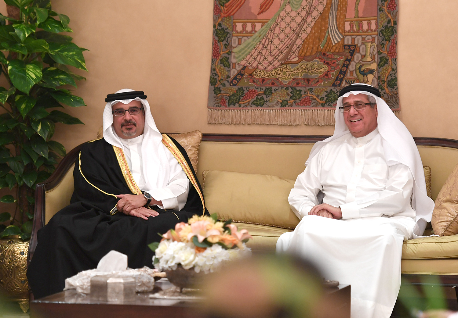 Manama, June 11 (BNA): His Royal Highness Prince Salman bin Hamad Al Khalifa, Crown Prince, Deputy Supreme Commander and First Deputy Prime Minister, this evening visited the Majlis of Adviser of Media Affairs to His Majesty the King, Nabeel bin Yaqoob Al Hamar, the Majlis of the Kanoo family, and the Majlis of the Al Jishi and Al Khuza'ai families. HH Shaikh Isa bin Salman Al Khalifa accompanied HRH during the visits.