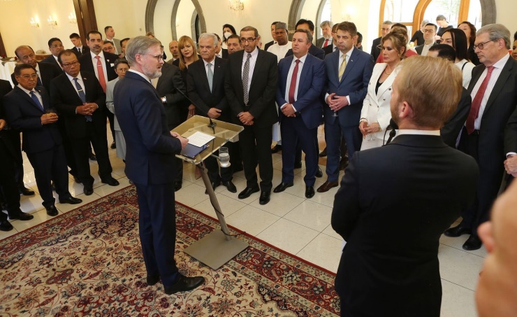 During his participation in the introductory ceremony of the new Czech government at Liechtenstein Palace in Prague, in the presence of the heads of diplomatic missions, senior government officials, and members of Parliament, the Ambassador expressed his congratulations and wishes for continued progress and prosperity to the Czech Republic and its friendly people.