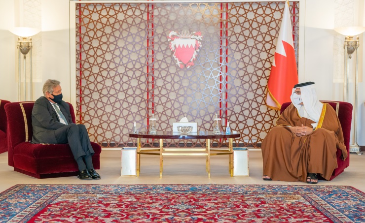 Manama, Nov. 23 (BNA): His Royal Highness Prince Salman bin Hamad Al Khalifa, the Crown Prince and Prime Minister, today received the Director-General and Chief Executive Officer of the International Institute for Strategic Studies (IISS), Dr John Chipman, at Riffa Palace. HRH the Crown Prince and Prime Minister highlighted the Kingdom of Bahrain’s commitment to supporting international efforts that enhance development, security, and stability. His Royal Highness added that international partnerships have proven effective in addressing global challenges and are a cornerstone for consolidating the foundations of global peace and security. HRH Prince Salman bin Hamad highlighted the cooperation between the Kingdom of Bahrain and the IISS, nothing the Institute’s success in organising the regional security forum “Manama Dialogue”, the seventeenth edition of which was recently held in Bahrain. His Royal Highness noted that the forum is an influential global platform that facilitates communication channels and the exchange of ideas on issues of regional and global security and stability. HRH the Crown Prince and Prime Minister highlighted the importance of research studies as a base on which international strategies and efforts to strengthen security and stability can be built, noting the role played by the IISS in this aspect. For his part, Dr Chipman expressed his gratitude for the opportunity to meet with HRH the Crown Prince and Prime Minister, noting HRH’s commitment to strengthening cooperation between the Kingdom of Bahrain and the IISS. Dr Chipman also expressed his thanks to the Kingdom for hosting the seventeenth edition of the "Manama Dialogue". The Chairman of the Rashid Equestrian and Horse Racing Club High Committee, HH Shaikh Isa bin Salman bin Hamad Al Khalifa, HH Shaikh Mohammed bin Salman bin Hamad Al Khalifa, and the Minister of Finance and National Economy, HE Shaikh Salman bin Khalifa Al Khalifa, also attended the meeting.
