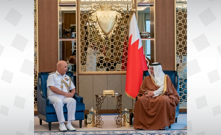 Manama, July 28 (BNA): His Royal Highness Prince Salman bin Hamad Al Khalifa, the Crown Prince, Deputy Supreme Commander and Prime Minister, today met with the Deputy Chief of the Naval Staff of the Republic of India, Vice Admiral Sanjay Mahindru, and an accompanying delegation, at Gudaibiya Palace.