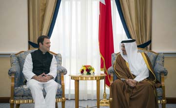 Manama, Jan. 8 (BNA): His Royal Highness Prince Salman bin Hamad Al Khalifa the Crown Prince, Deputy Supreme Commander and First Deputy Prime Minister today met with the President of India’s National Congress (NCP) Party, Rahul Ghandi, at Gudaibiya Palace. Bahrain’s Foreign Minister Shaikh Khalid bin Ahmed bin Mohammed Al Khalifa attended the meeting.