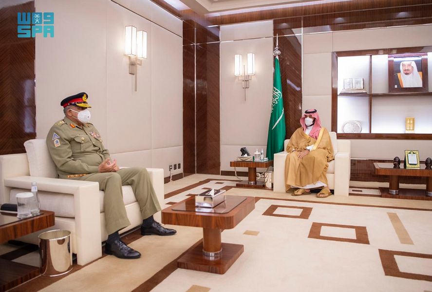 Jeddah, May 07, 2021, SPA -- His Royal Highness Prince Mohammed bin Salman bin Abdulaziz, Crown Prince, Deputy Prime Minister and Minister of Defense, met here today with the Chief of Army Staff of the Islamic Republic of Pakistan Gen. Qamar Javed Bajwa. During the meeting, they discussed the bilateral relations in the military and defense fields and ways to enhance them, in addition a number issues of common concern. The meeting was attended by Prince Khalid bin Salman bin Abdulaziz, Deputy Minister of Defense; Minister of State, Cabinet Member and National Security Advisor Dr. Musaed bin Mohammed Al-Aiban; President of General Intelligence, Khalid bin Ali Al-Humaidan; Saudi Ambassador to Pakistan, Nawaf bin Saeed Al-Malki; Pakistani Ambassador to Saudi Arabia, Lt-Gen. Bilal Akbar and a number of officials. --SPA
