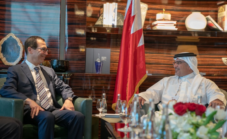 Manama, June 26 (BNA): His Royal Highness Prince Salman bin Hamad Al Khalifa, the Crown Prince, Deputy Supreme Commander and First Deputy Prime Minister, today met with the United States of America’s Secretary of the Treasury, the Honorable Steven Terner Mnuchin; and the Senior Advisor to the President of the United States of America, the Honorable Jared Kushner, on the sidelines of the Peace to Prosperity Workshop - hosted in partnership with the United States. During the meeting, HRH the Crown Prince noted that the long-standing relations between Bahrain and the United States are built upon trust, mutual respect, and a shared commitment to global security. In this regard, HRH the Crown Prince welcomed the role of the US in promoting regional and international security, and emphasised the importance of further strengthening bilateral cooperation in all fields. The Minister of Finance and National Economy, HE Shaikh Salman bin Khalifa Al Khalifa, also attended the meeting.